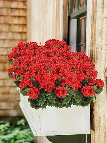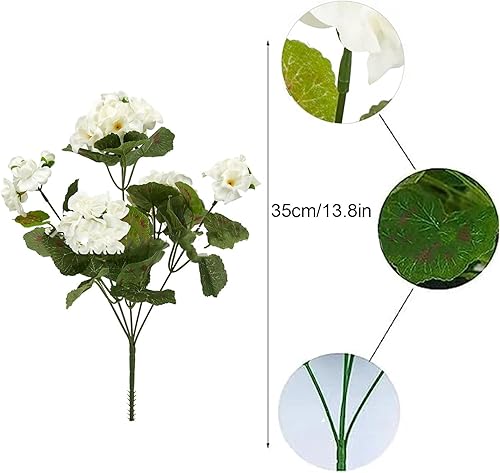 2 Pièces Fleur de Géranium Artificielle en Soie, Buisson de Géranium Rouge Artificiel D'extérieur, Fausses Fleurs de Géranium Rouge pour Décoration Florale de Jardin Intérieur(Blanc)