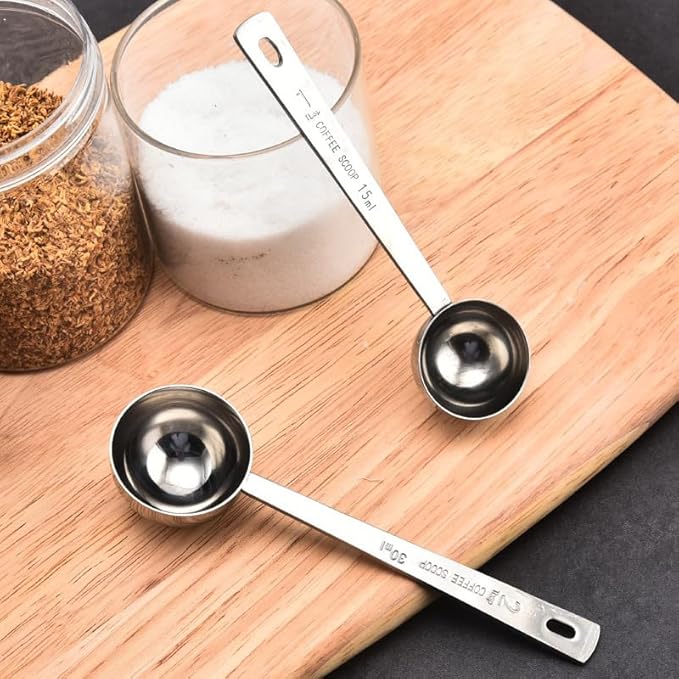 Lot de 2 cuillères à café - 15 ml - 30 ml - En acier inoxydable - Long manche - Pour café moulu, thé, sucre, lait en poudre