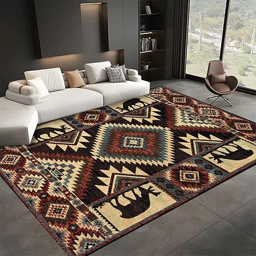 SMXVRC Sud Ouest Salon Canapé Tapis, 100x150cm, AméRindiens Moquette pour Chambre, éCologiqu Durable Absorbant AntidéRapant Poils Ras Tapis Doux pour GarçOns Filles Chambre Chambre d'enfant