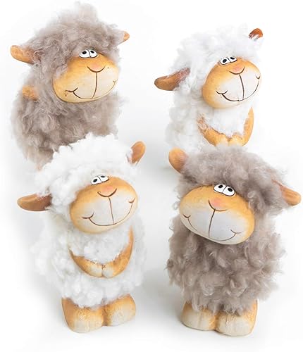 Logbuch-Verlag 4 figurines de moutons amusantes - Décoration de Pâques à poser comme cadeau pour employés, cadeau de Pâques