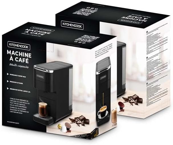 Kitchencook - Machine à Café - Multi Dosettes Et Moulu - 20 Bars - Préchauffage Rapide - Panneau Digital - Indication Led - Noir