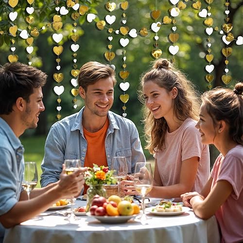 FloraVigo Lot de 4 guirlandes de 4 m en forme de cœur dorées, décorations de mariage, guirlande en papier à suspendre pour anniversaire, mariage, fiançailles, anniversaire, décorations de fête