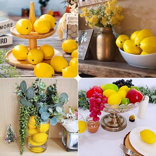 Srvauyea 10 Pièces Citrons Jaunes Artificiels, Réalistes Citron en Plastique, Faux Citrons Jaunes Réalistes, Citron Décorative Simulé pour la Cuisine, Les Fêtes D'été et Les Centres de Table