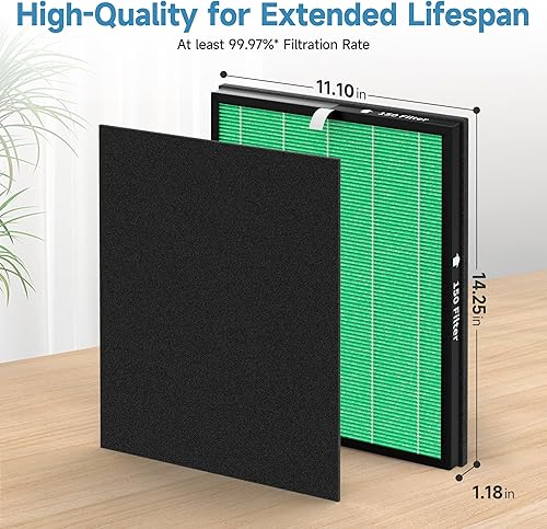 VALZONE Lot de 2 filtres HEPA de rechange pour purificateur d'air Coway Airmega 150, 2 filtres HEPA verts et 4 filtres à charbon actif, numéro de pièce AP-1019C-FP