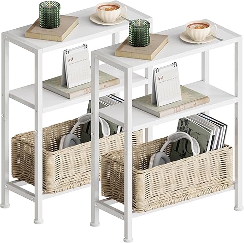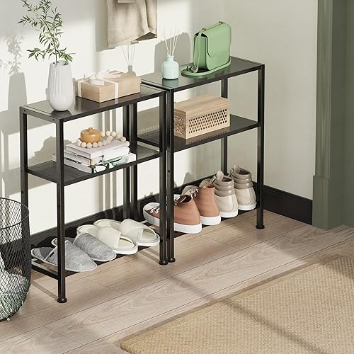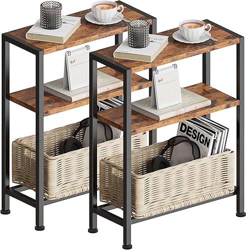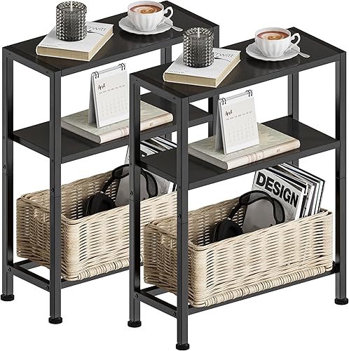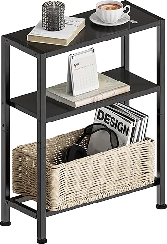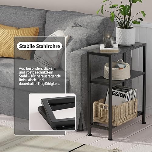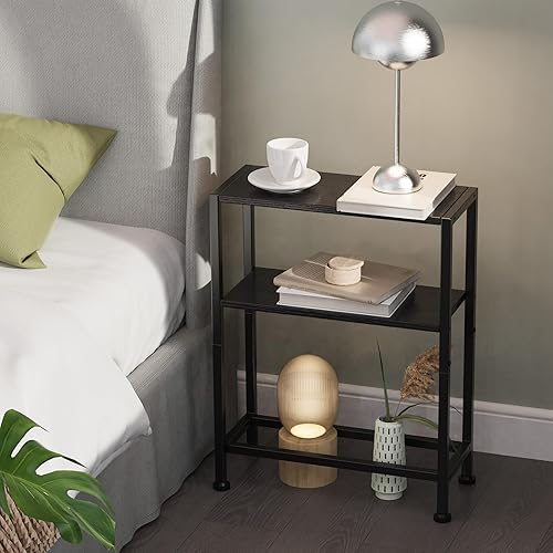 Table d'appoint étroite à 3 étages - Table de chevet étroite avec espace de rangement - Canapé d'appoint pour pièces étroites - Petite table pour salon, chambre à coucher, cuisine et balcon - Noir