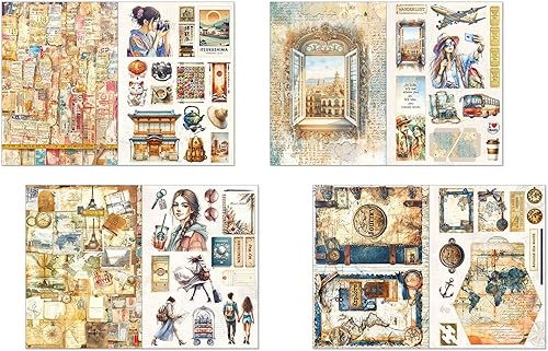 Ciao Bella Junk Journal & Ephemera Book Wanderlust - papier à motifs A4 pour scrapbooking cartes de vœux emballage cadeau créatif DIY