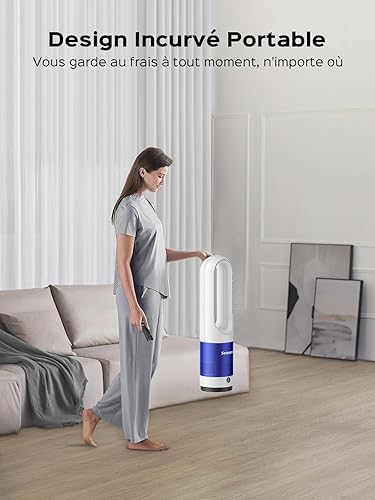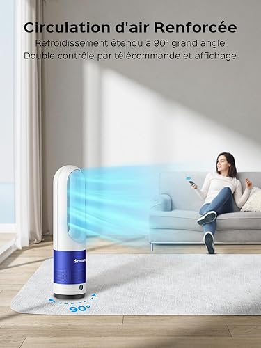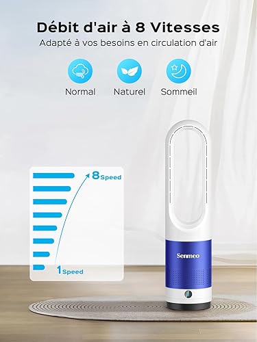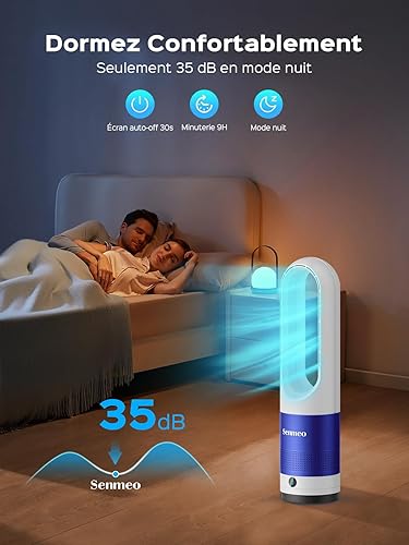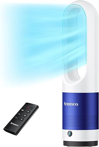 Senmeo Ventilateur Sans Pale de 55cm, Ventilateur Colonne Silencieux avec Télécommande, 8 Vitesses, Oscillation à 90°, Minuterie 9h, Affichage LED, Ventilateur Tour pour Chambre à Coucher, Bureau