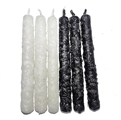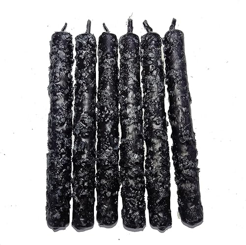 Lot de 6 bougies en forme de rue avec sel - 11 cm - Bougies de promesse - Éloigne les mauvaises énergies et attire les bonnes énergies (noir)