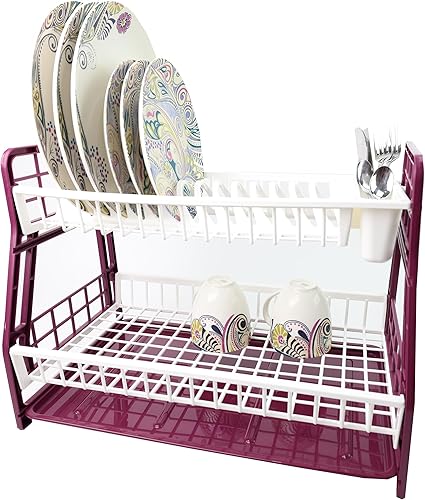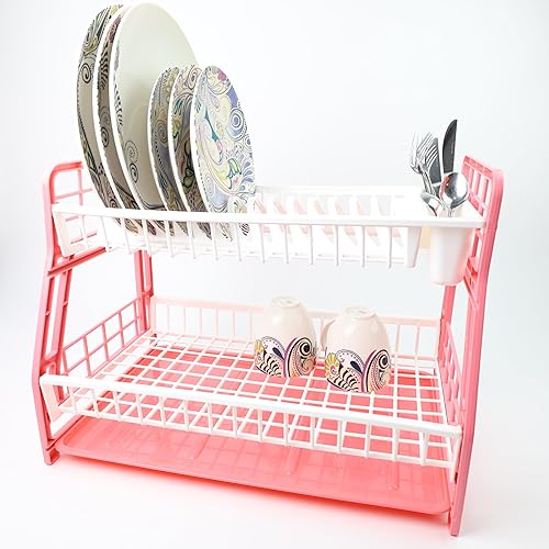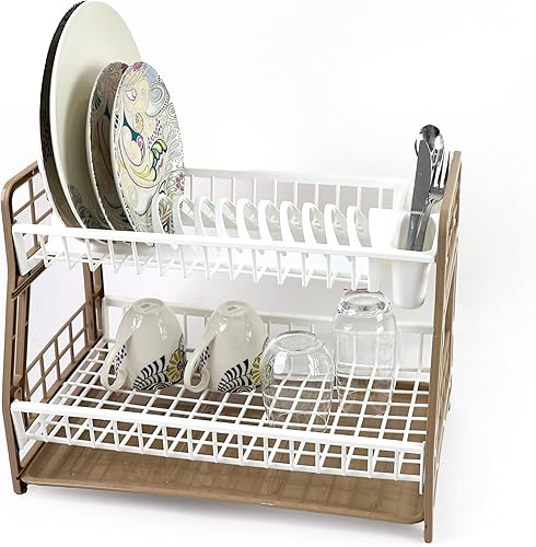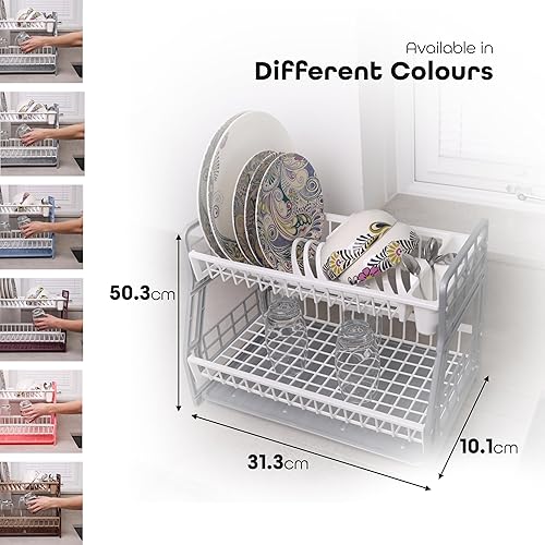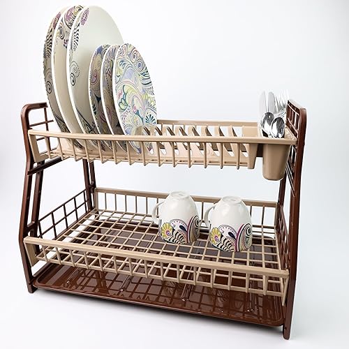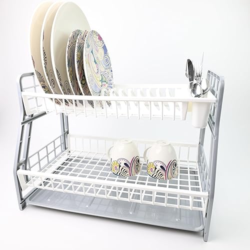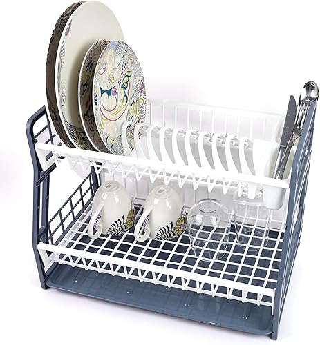 DIVCHI Égouttoir à vaisselle à 2 niveaux en plastique de grande capacité, porte-ustensiles, planche d'égouttement – Comptoir de cuisine, organisateur au-dessus de l'évier pour assiettes, bols, tasses