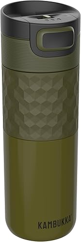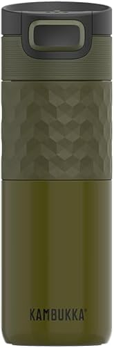 Kambukka Etna Grip, Mug de Voyage Isotherme 500 ml, Double Paroi Inox, Antifuite, Vert Olive
