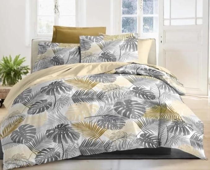 Générique Parure de Lit 4 Pièces, 160 x 200 cm, Motif Losanges Tropicales Vert, 100% Coton, 57 Fils/cm²