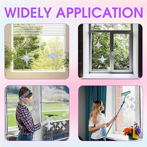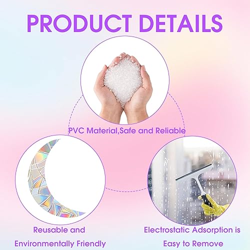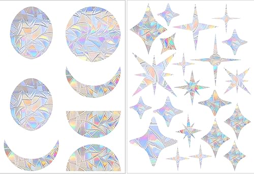 28 Pièces Suncatcher Sticker, Arc-en-Fenêtre Adhère Moon And Sun Phase Window Clings Stickers Anti Collision Oiseaux Autocollants Décoratifs Non Adhésifs pour Cuisine Salle à Manger Chambre