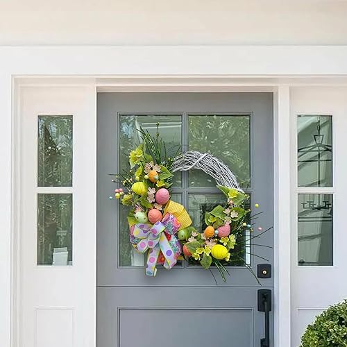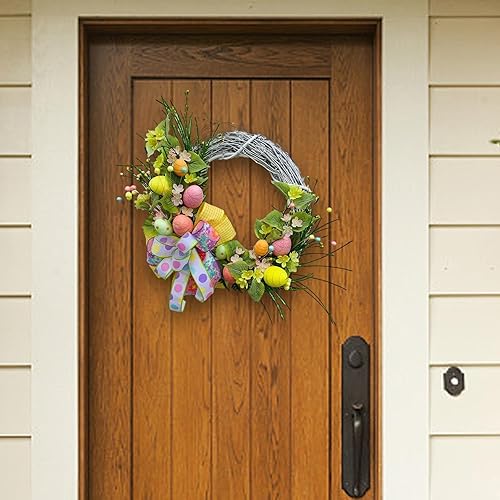 perfk 45 Cm Couronnes Décoratives, Décorations De Pâques, Couronne D'œufs De Pâques, Couronne De Porte, Couronne De Printemps pour Porte D'entrée, Décoration Intérieure Et Extérieure