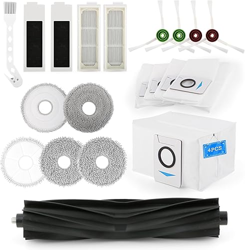 Lot de 19 accessoires pour ECOVACS DEEBOT T20 Omni/T20 Max/T20 Pro/T20e Omni robot aspirateur ,1 Brosse à rouleau,4 filtres,5 chiffons de nettoyage,4 brosses,4 sacs à poussière,1 brosse de nettoyage