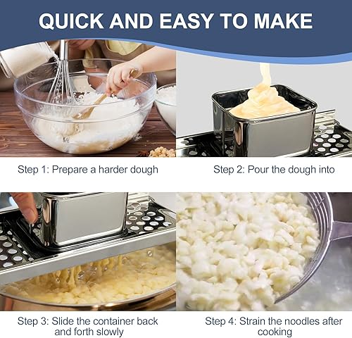 Râpe à spätzle, râpe à spätzle en acier inoxydable avec poignée en caoutchouc,Passoire à Spätzle Passe au Lave-Vaisselle, pour Spaghetti, des Boulettes, des Pâtes