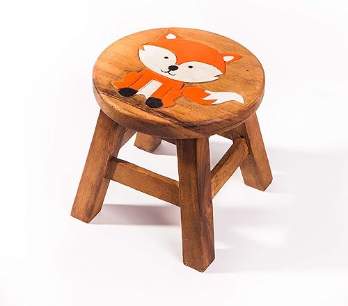 Tabouret pour enfant - En bois massif - Avec motif animal renard 2 - Hauteur d'assise : 25 cm