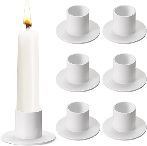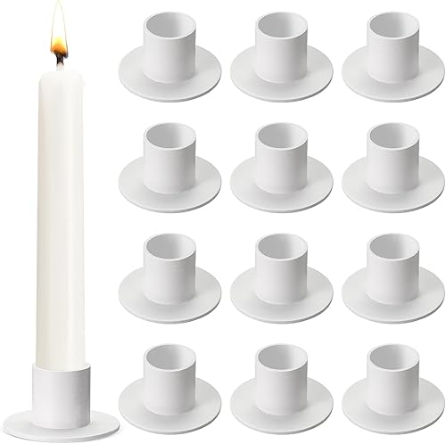 Gulfmew 12 Pièces Bougeoir pour Bougies Bâtons Chandelier pour Bougies de Table Douilles pour Bougies en Métal Porte-Bougies pour Décoration de Salon Salle à Manger Chambre à Coucher(Blanc)