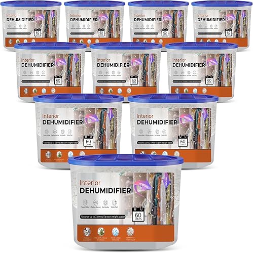 Roe Tenpo Lot de 10 déshumidificateurs 500 ml - Absorbeurs d'humidité pour l'humidité, les moisissures - Absorbeurs de condensation - Idéal pour la maison, la chambre, la salle de bain, la caravane