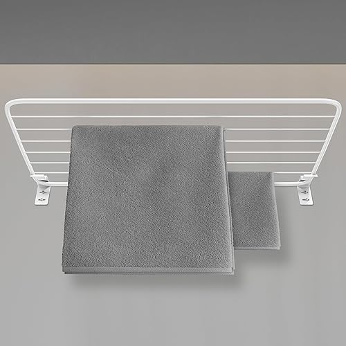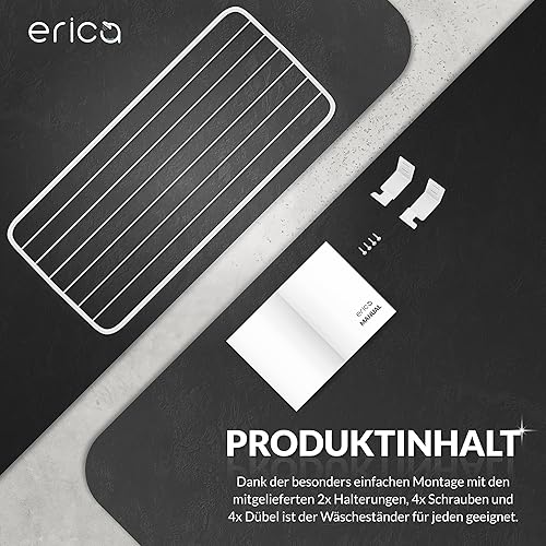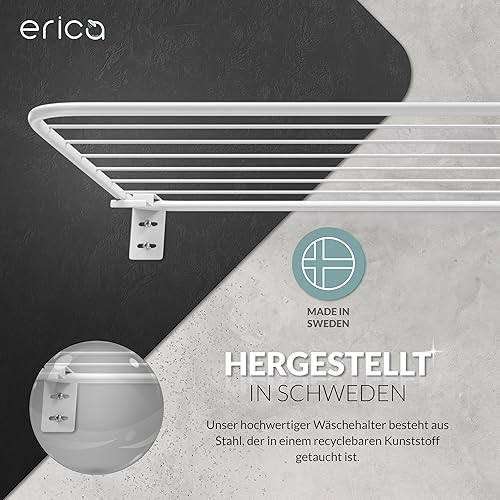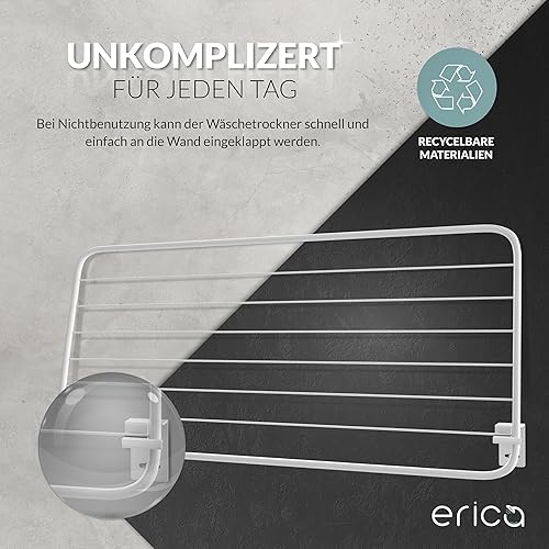 Erica Sechoir Mural BEDA 100x50cm, Etendoir à Linge Mural dépliable à Capacité de Charge 20kg Séche Linge depliable, Revêtement Plastique sans PVC, 100% Inoxydable, Blanc
