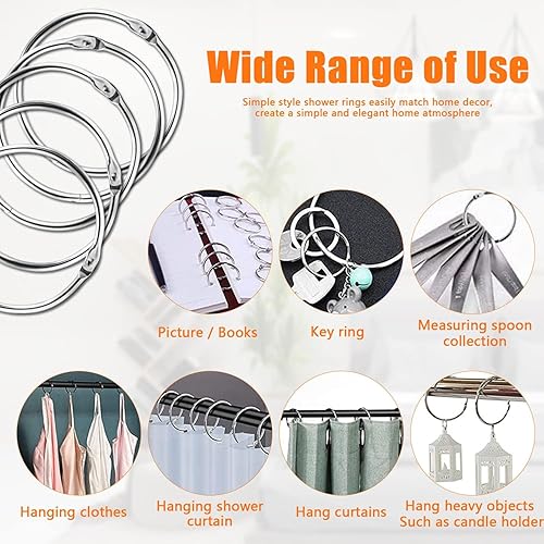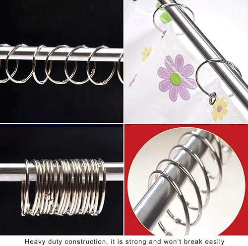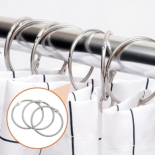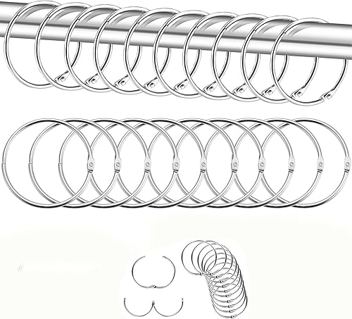 Anneaux Rideaux en Métal,20 PCS Argent Rideau Anneaux de pour Tringle à Rideaux et Rideau de Douche Lot d'Anneaux Circulaires Ouvrables avec Crochets - Décoration Maison & Salle de Bain