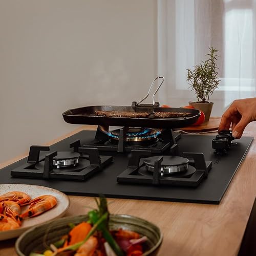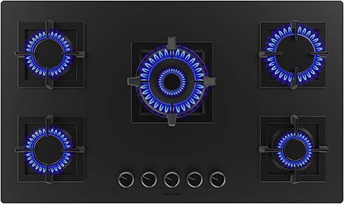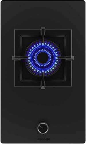Cecotec Plaque de Gaz 1 Feu pour Gaz Naturel et Butane Bolero Squad G 1800S Eternal Nano Glass. 5,6 kW, Verre Noir Mat, Grille Individuelle en Fonte, Brûleur Eternal avec Support WOK