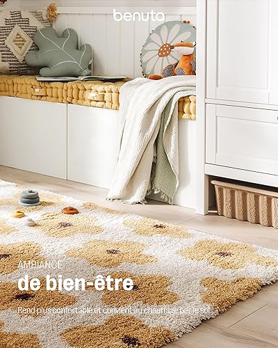 benuta Lytte Gobi Tapis pour enfant – Jaune 120 x 170 cm – Fibre synthétique – Rectangulaire et style : motifs pour enfants, Scandi Living – Facile d'entretien pour le salon et la chambre à coucher