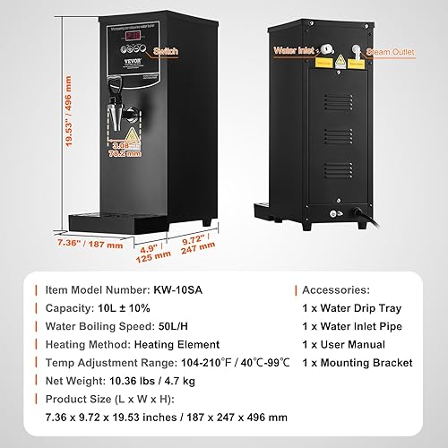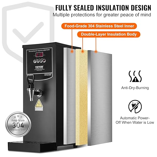 VEVOR Distributeur d'Eau Chaude Électrique Commercial, Fontaine à Eau Chaude 2500 W 50 L/h, avec Tube Chauffant en Acier Inoxydable 316, Chauffage Rapide Étape par Étape, pour Café, Thé, Bureau