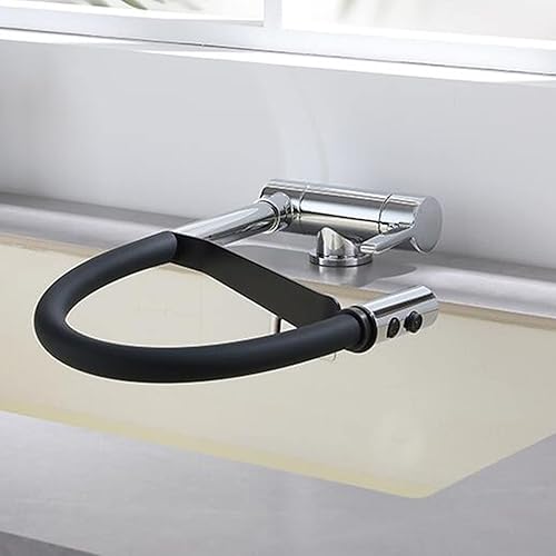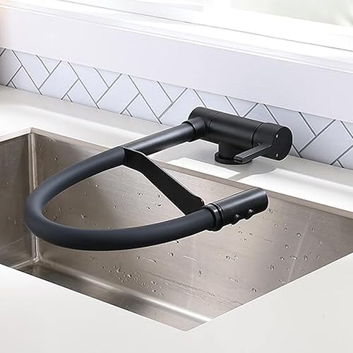 Mitigeur Cuisine Rabattable sous Fenetre, Robinetterie de Cuisine Pliable Pivotant Laiton Multifonction Robinet de Cuisine sous Fenetre-Noir