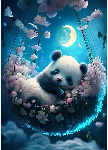 RICUVED Panda Peinture Diamant 5D Complet, Diamond Painting Panda Diamant Peinture Point, Kit de Peinture Diamantée Animaux DIY pour Adulte, Décoration Murale Decor 30x40cm