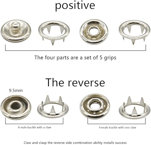 100 pcs boutons-pression avec pinces, bouton pression metal, boutons métalliques sans couture pour Porte-Feuille Sac à Main Vêtements Artisanat de Couture Fournitures de Bricolage