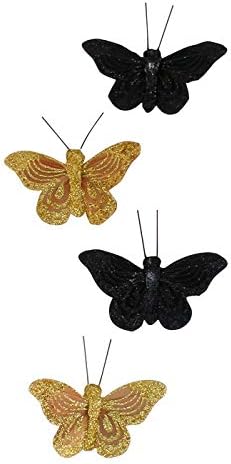 Aimants Plumes pour Rideaux, décor Papillon koh Samui, Couleurs Noir & Or, 4 Papillons