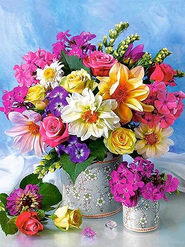 CHOSIGHT DIY Broderie Diamant Peinture Kit Fleur, 5D Diamond Painting Plante Complet Rond Cristal Strass Artisanat Murale Pour Maison Salon Chambre Décoration 30x40 cm
