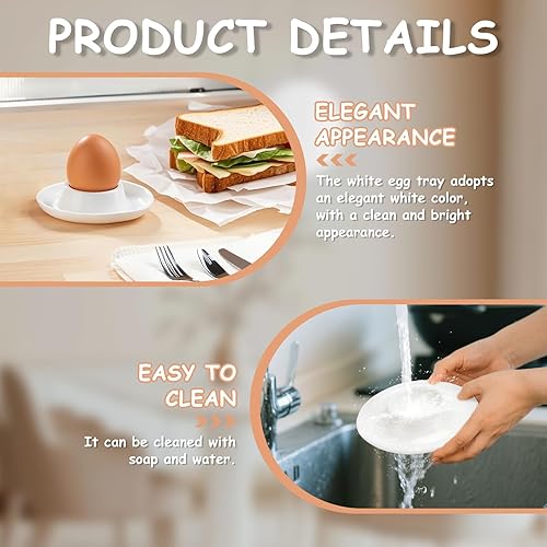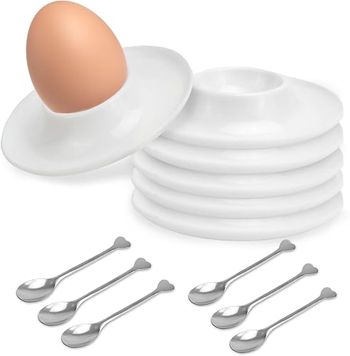 KXVXXV Lot de 6 coquetiers en plastique blanc pour enfants et camping - Empilables avec cuillère avec plateau - En plastique