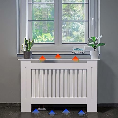 Toboli Cache-radiateur – Blanc – 112 x 19 x 82 cm – en MDF – Couverture protège-chauffage décorative, Tablette Étagère Console