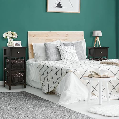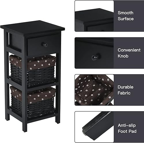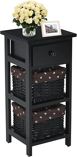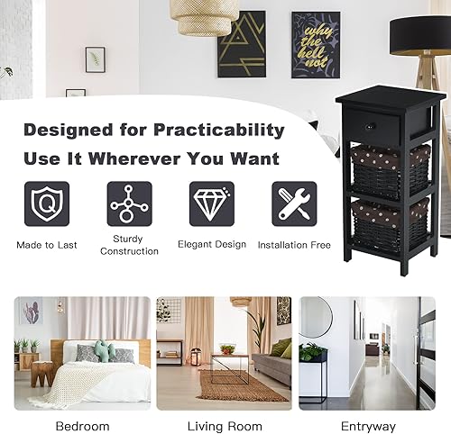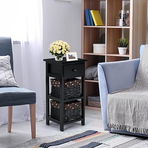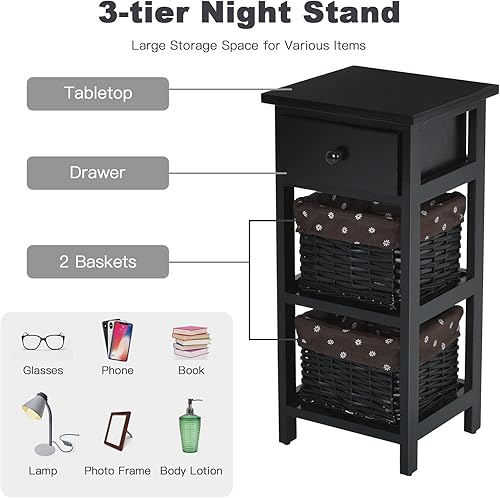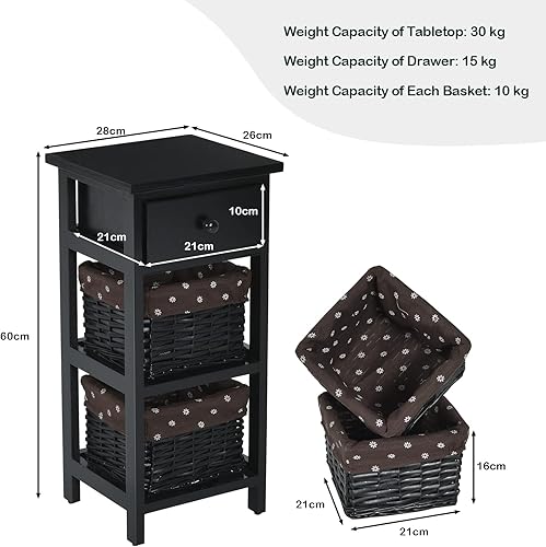 Giantex Table de Chevet avec Panier d'Osier Amovible & 1 Tiroir, Table de Nuit Style Antique, Table d'Appoint Étagère en Bois Massif, Commode pour Chambre à Coucher, Blanc