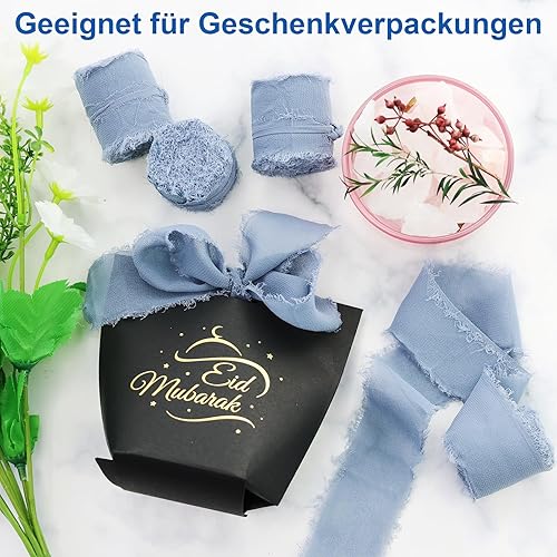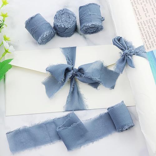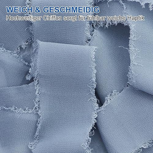 Lot de 4 rubans en mousseline de soie gris bleu pour mariage, cadeau, festival, emballage cadeau, bouquet de fleurs