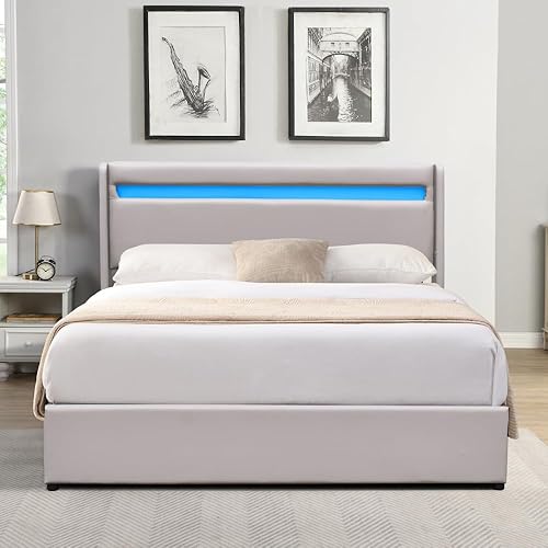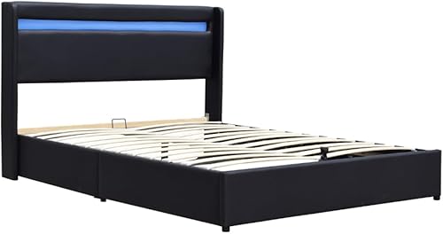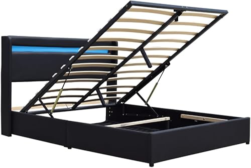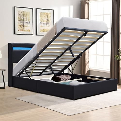 King of Dreams Lit Coffre Déhoussable 120x190 cm avec Tête de Lit LED - 12 Lattes - Montage Rapide - Revêtement PVC Simili Facile d'entretien