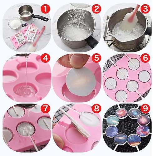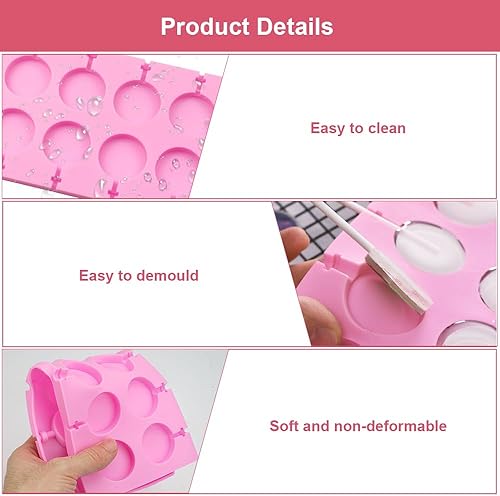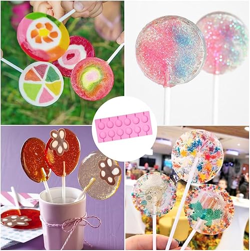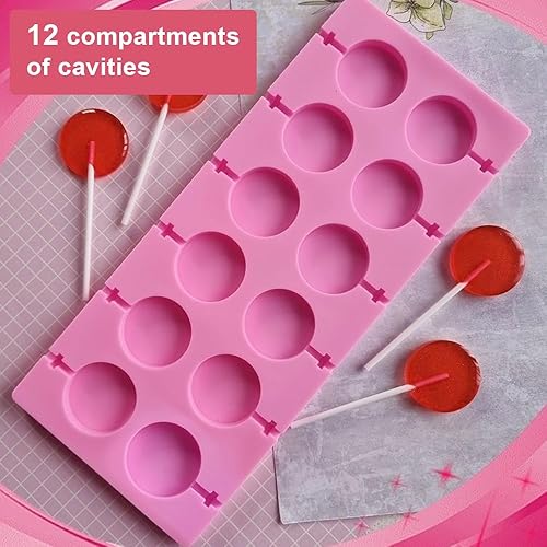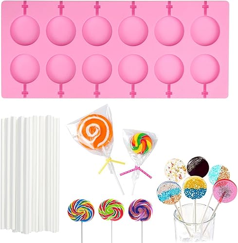 Moule à Sucettes en Silicone, 12 Moule à Sucettes Rondes pour Chocolat avec 20 Bâtonnets pour Sucettes, Antiadhésifs, Faciles à Démouler pour Gâteaux, Bonbons, Gelées et Sucettes au Chocolat.