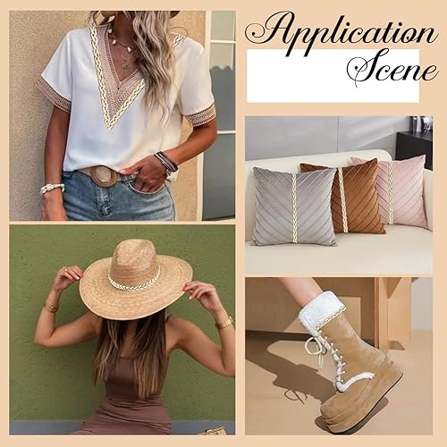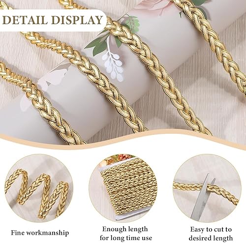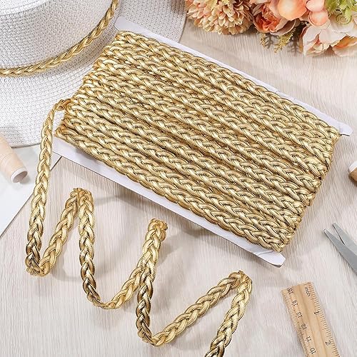 CABODYALS 20 yard de Galon Doré en Dentelle Ondulée Métallique en Forme de Blé Ruban Tressé Sangle Tissée Garniture Vintage en Polyester Fin pour Couture Confection de Vêtements Accessoires Décoration