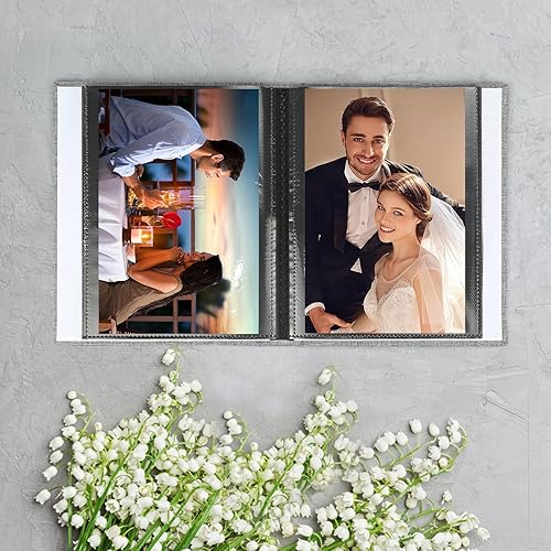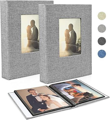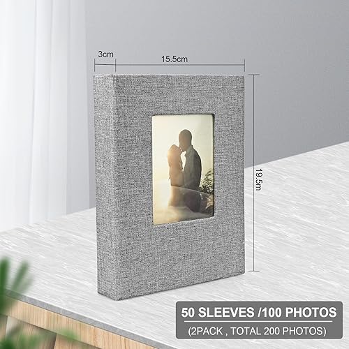 Album photo 10 x 15 cm 200 – 2 paquets de petit mini lin avec pages noires, 100 pages pour 200 photos, album à pochettes pour bébé, Saint-Valentin, cadeau d'anniversaire