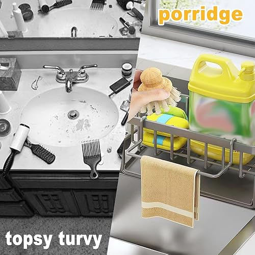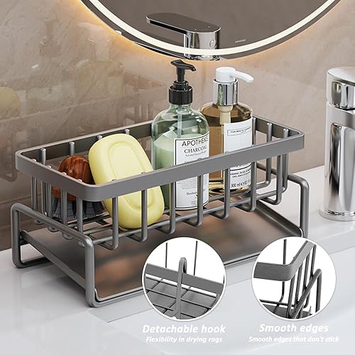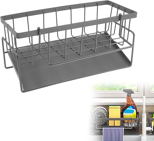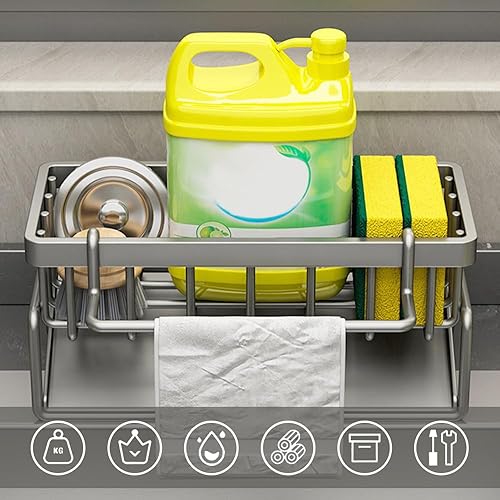 Rongxze Organisateur Evier Cuisine, Porte Eponge Evier Cuisine avec Vidange Automatique, Acier Inoxydable Sink Caddy Rangement Eponge Evier Cuisine pour Porte Eponge, Porte Serviettes (23x9x10 cm)