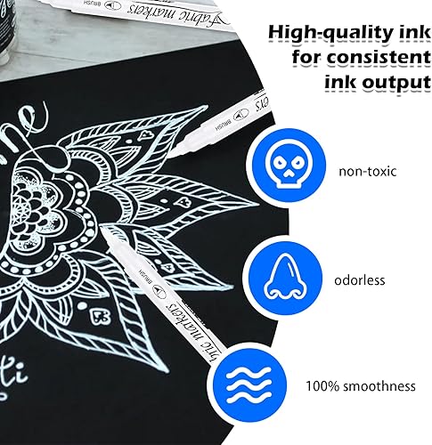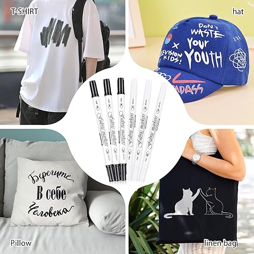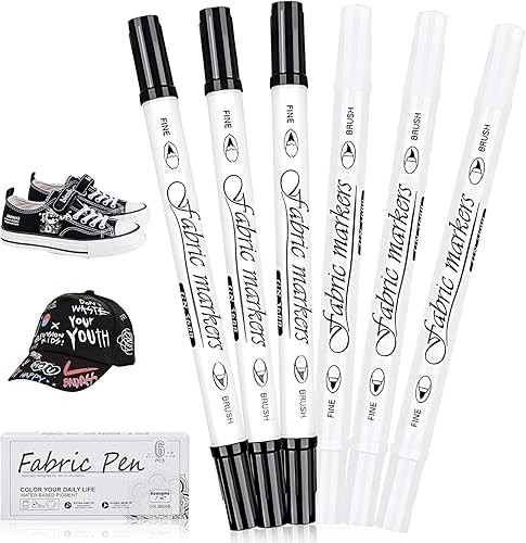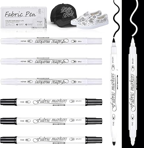 Lot de 6 marqueurs textiles - Stylo peinture - Blanc et noir - Double pointe - Résistant au lavage - Pour t-shirts, sacs en tissu et autres textiles - Pour enfants et adultes - Lavable en machine