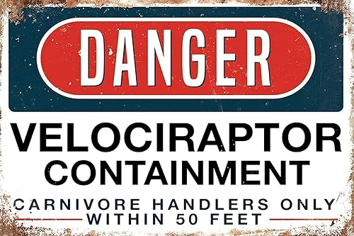 JIMOWANG Jesiceny New Sign Danger Velociraptor Conteneur Vintage Métal Signs pour Cafes Bars Pubs Boutique Décoration Murale Drôle Rétro Signes 20,3 x 30,5 cm