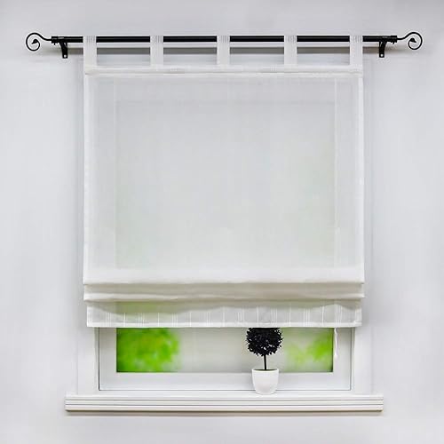 Joyswahl Ulla Store Bateau Semi-Transparent avec Oeillets en V, Polyester, Blanc LxH 80x140cm 1 Pièce