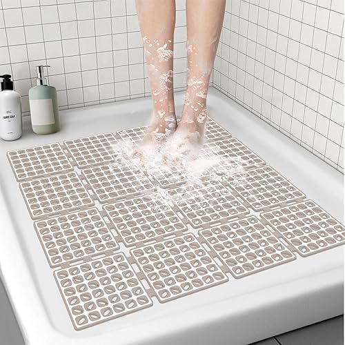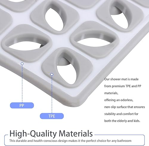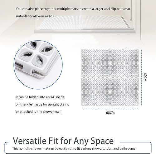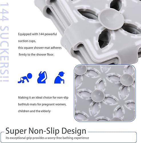 BWBIKE Tapis de Douche Carré Tapis de Sol de Douche Antidérapant avec Ventouses et Trous de Drainage Tapis de Bain Intérieur Extérieur Tapis de Cabine de Douche de Salle de Bain, 60 x 60 cm, Gris