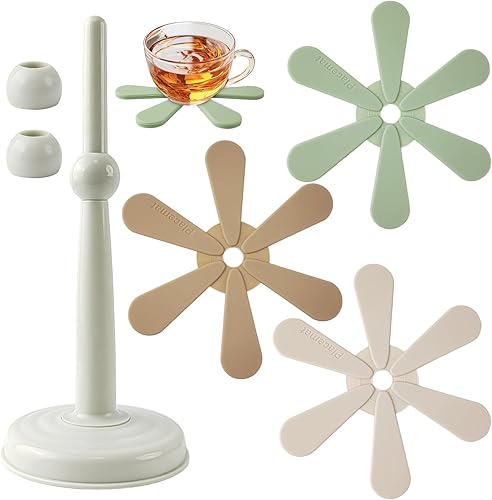 4 Pièces sous-Verres Forme d'arbre, Silicone Dessous de Verre avec Support de Rangement, Pliables Réutilisables sous Verre, sous Bock pour Casseroles et Poêles Chaudes, Plats, Bols (1)