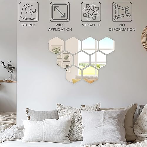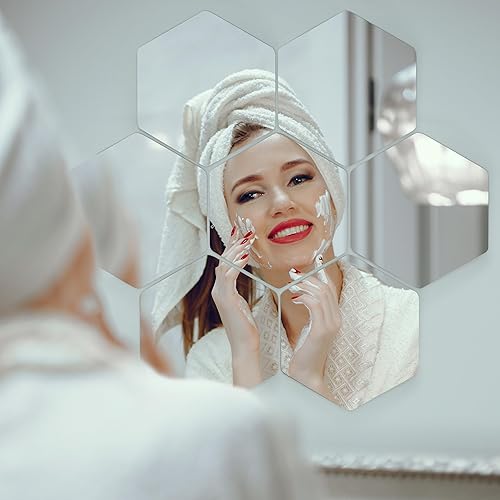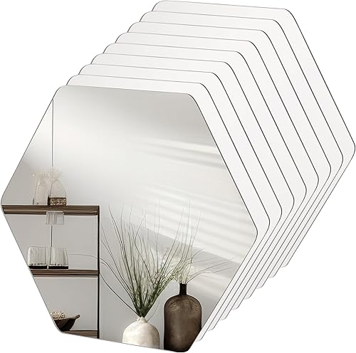 Belle Vous (Lot de 9) Petit Miroir Mural Hexagonal - 20,5 x 18 cm - Mini Miroir A Coller pour Salon, Chambre ou Couloir - Idéal pour les Projets d’Art & Artisanat
