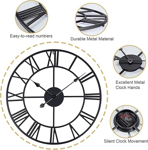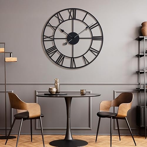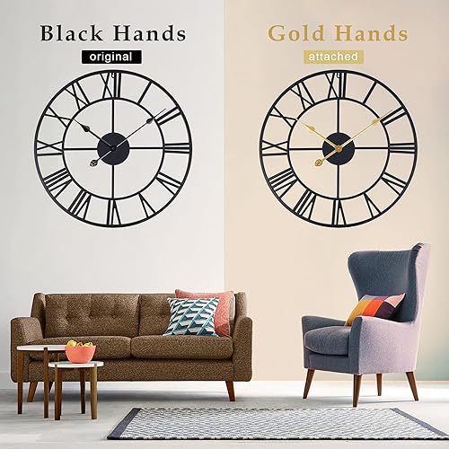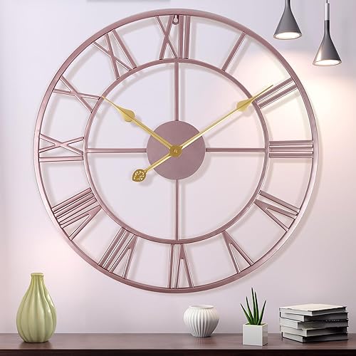 Lafocuse 56cm Horloge Murale Geante Métal Or Rose Unique Silencieuse, Grande Horloge Design Moderne avec 2 Paires d'aiguilles, Pendules Murales en Chiffre Romain pour Décor de Salon Chambre Cuisine