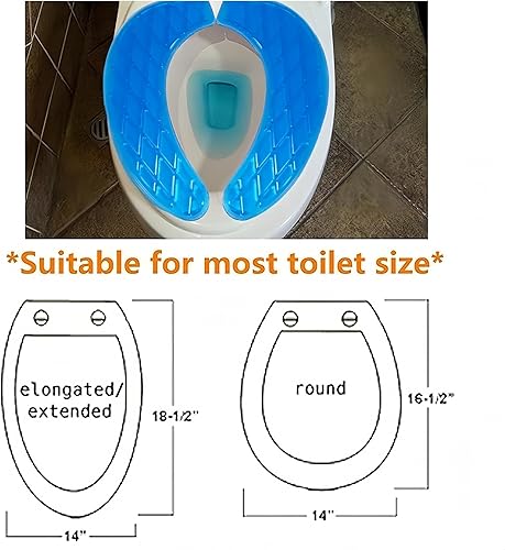 Coussin de siège de toilette en gel lavable et doux, coussin rehausseur rembourré pour toilettes et chaise percée, coussin adhésif réutilisable pour personnes âgées, personnes âgées (bleu)