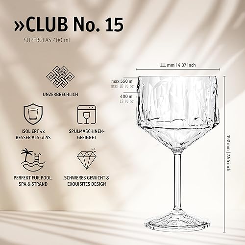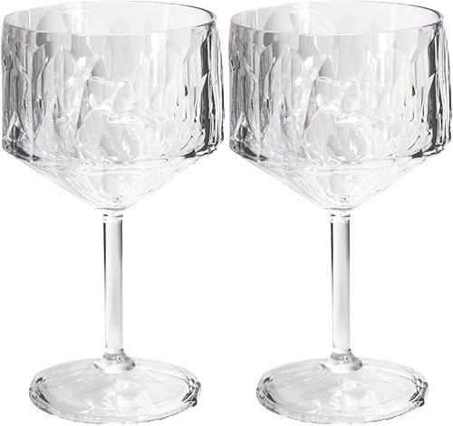 Koziol Superglas Club No.15 Lot de 2 verres à cocktail et à gin 400 ml avec pied en plastique transparent luxueux incassable réutilisable pour fête, camping